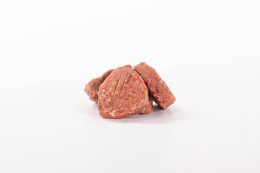 Navodila za uporabo | Pred uporabo popolnoma odtajajte izdelek. Po odtajanju shranjujte v hladilniku do 24 ur. Vedno mora biti na voljo sveža pitna voda. Nikoli ne spreminjajte hrane naenkrat, temveč postopoma povečujte odmerek nove hrane. Samo za uporabo kot hrana za hišne živali. Hraniti ločeno od živil. Po ravnanju s tem izdelkom umiti roke ter očistiti orodje, pripomočke in površine. Navodilo za hranjenje:tabela z dnevnim vnosom hrane odtisnjena na embalaži. 1 polpetek = 25g. |